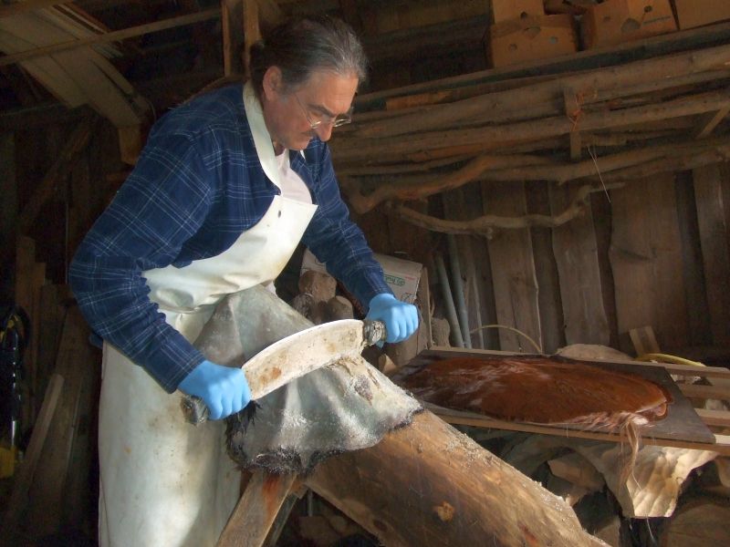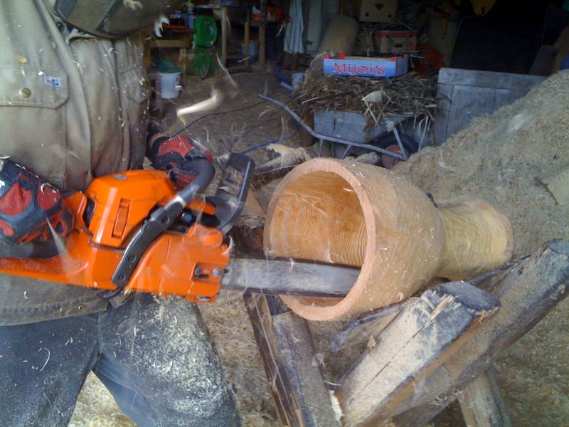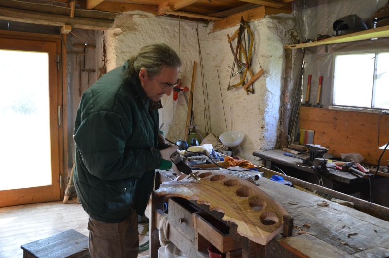 Der Weg hin zum fertigen Instrument ist allerdings ein eher steiniger und nicht jedermanns Sache. Ich denke dabei an die notwendigerweise händische Bearbeitung von rohen, blutigen Häuten. Auch stundenlanges freies Arbeiten mit der Motorsäge ist so eine Sache. Trotzdem gibt es natürlich Menschen, die sich davon nicht abhalten lassen.
