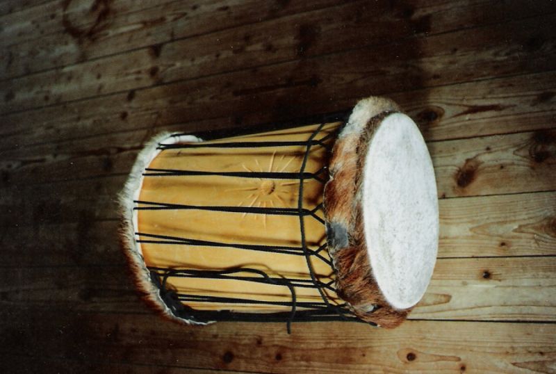 Afrikanische Art einer beidseitig bespannten zylindrischen Trommel.